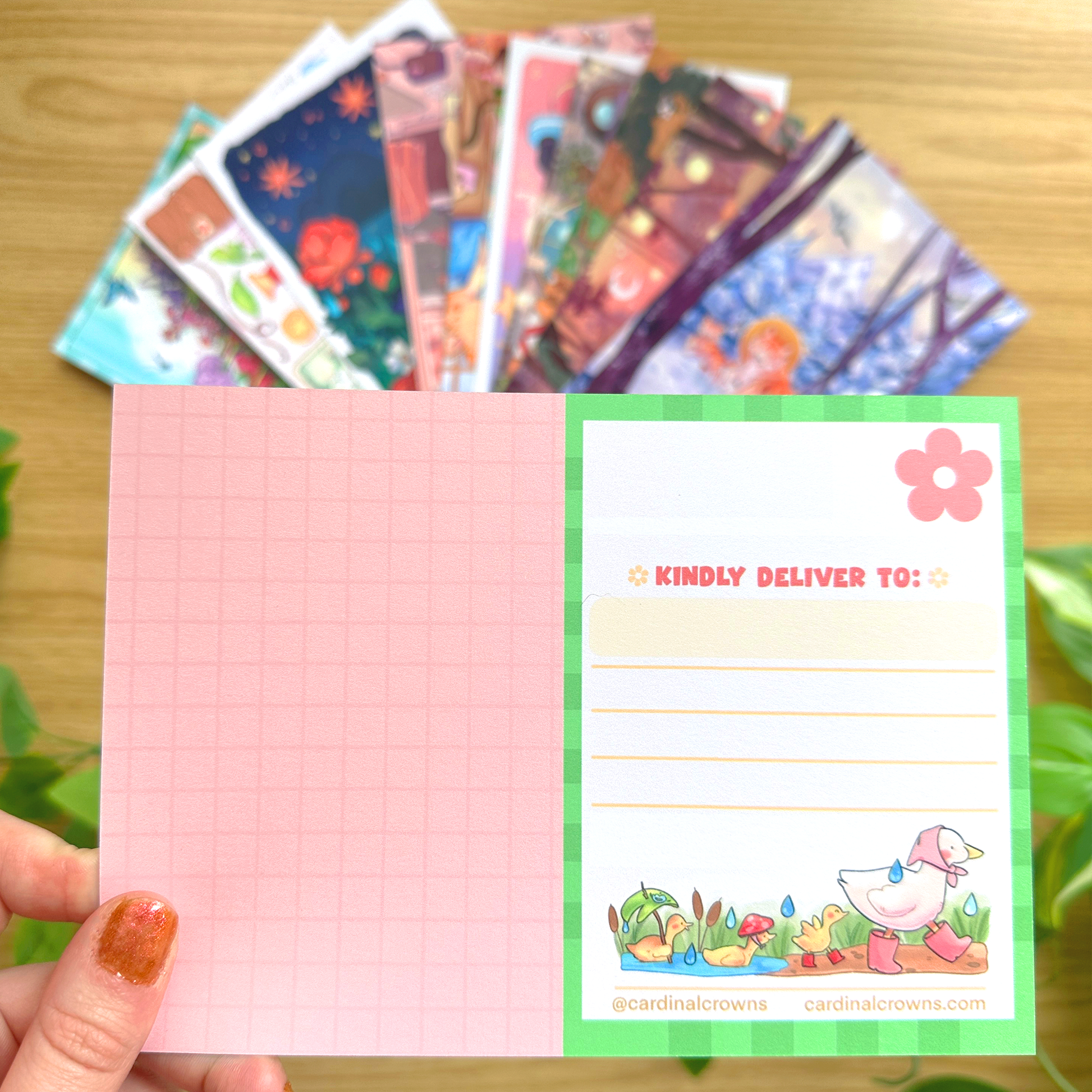 - 1 uniform postcard backing with a cute duck illustration